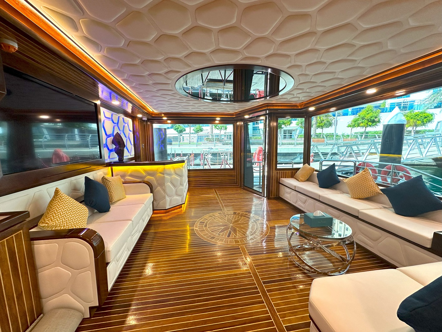 Prices start from AED 990 per night per room. This Superyacht is also available for private hire—ideal for corporate gatherings, private celebrations, or full buyouts of all 31 rooms and suites. Cruise around Abu Dhabi in unmatched style and luxury, making your special occasion truly unforgettable.